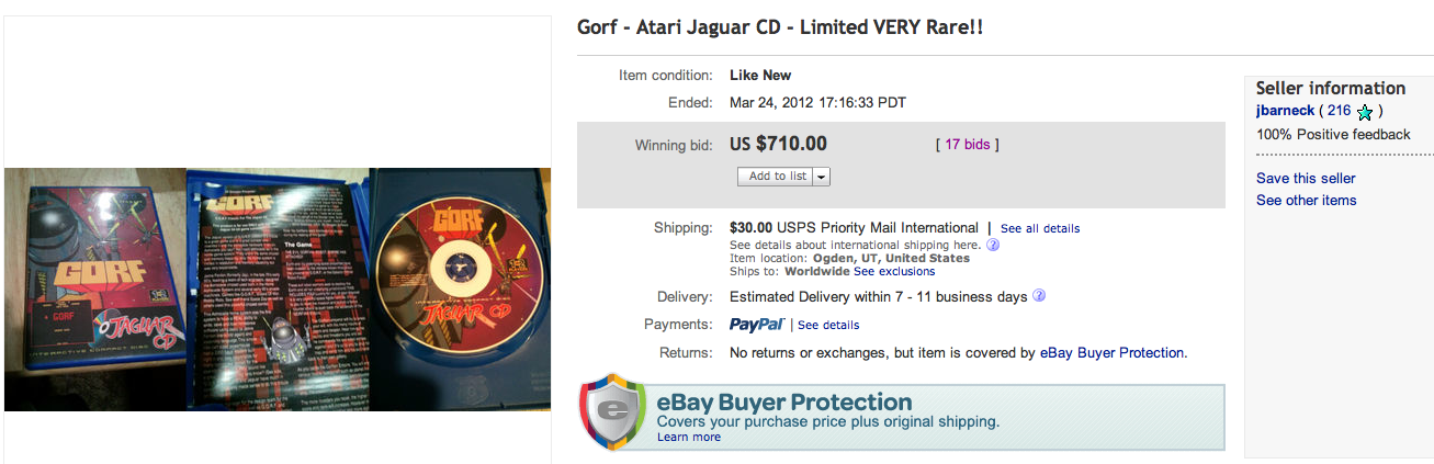 La raison? Une édition limitée dont très peu d'exemplaires existent. En fait personne ne sait exactement combien il en existe, et les auteurs ont toujours refusé de donner les chiffres. Mais est-ce une raison qui justifie un tel prix? Humm... c'est très discutable, surtout que le potentiel ludique du jeu n'a rien d'exceptionnel (jeu de shoot spatial en 3d); mais bon, ça reste un jeu très recherché des collectionneurs sur Jaguar.