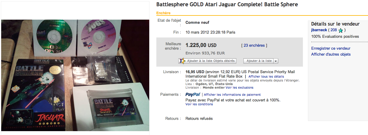 Vendu à 1225$ (933€) sur Ebahi ! (mais non je n'ai pas fait de faute sur le nom du site :mrgreen: )