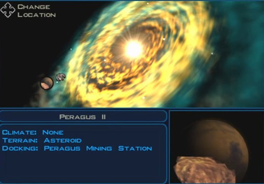 Peragus II est une planète située dans la Bordure Extérieure, aux sous-sols très riches en carburant. Très vite, des mineurs s'y installèrent donc afin d'exploiter cette précieuse ressource naturelle. Ladite exploitation dura plusieurs centaines d'années, jusqu'à ce qu'un accident ne provoque une terrible explosion qui détruisit totalement la planète. Ses restes formèrent un champ d’astéroïdes, qui furent à leur tour exploités à partir d'une station spatiale, ce afin de récupérer les restes de carburant qu'ils contenaient. L'avantage de ce dernier était d'être très bon marché, et Peragus II devint rapidement un fournisseur important pour tous les systèmes environnants, Telos en tête. Cette planète détruite par Malak lors de la Guerre Civile des Jedi avait en effet besoin d'une énorme quantité de combustible pour sa reconstruction, et notamment pour alimenter la gigantesque Station Citadelle en orbite...Peragus II allait pourtant de nouveau connaître un funeste destin. Un jour, un cargo baptisé Ebon Hawk atterrit sur la station avec à son bord Meetra Surik, l'un des derniers Jedi ayant survécu au massacre de Katarr. Poursuivie par Dark Sion, un seigneur Sith, elle ne put s'échapper que de justesse à bord de l'Ebon Hawk. L'affrontement qui opposa ce dernier au vaisseau utilisé par Sion provoqua hélas une explosion qui détruisit complètement la station spatiale ainsi qu'une grande partie des astéroïdes au terme d'une effroyable réaction en chaîne. Depuis ce jour, Peragus II cessa d'exister en tant que fournisseur de carburant.