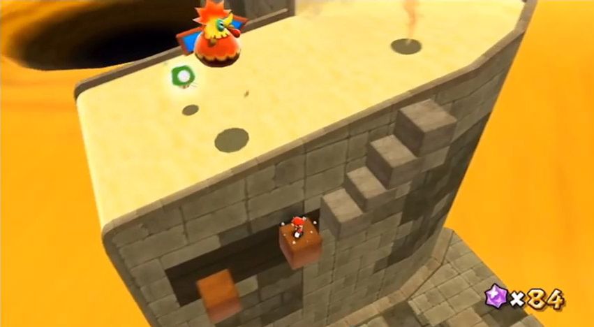 Vous l'aurez compris, c'est ce vaisseau qui sera le point central de l'aventure, celui-ci se substituant au château de Super Mario 64. Ainsi donne-t-il accès à un total de six dômes, chacun contenant un nombre défini de galaxies. Ce sont ces galaxies qui font office de niveaux. Chacune d'entre-elles offre la possibilité de récupérer entre une et sept étoiles, qui serviront par la suite à débloquer de nouveaux agrégats de planètes. Une fois le stock suffisant, l'ultime galaxie de la zone vous opposera à un boss qui une fois défait laissera tomber une Grande Étoile, débloquant le prochain dôme. Vous l'aurez compris, la logique de progression s'avère très proche du volet N64. Une soixantaine d'étoiles suffit donc pour vaincre Bowser et libérer Peach, pour une durée de vie relativement limitée. Notez cependant qu'en optant pour cette approche, vous n'aurez bouclé l'aventure qu'à soixante pour cent puisque vous pourrez collecter en tout pas moins de cent vingt et une étoiles ! Chaque galaxie en comportera trois de base, vous proposant de parcourir le même niveau d'une manière différente afin de toutes les collecter. S'y ajoutera un génial système de comètes permettant généralement d'en récupérer deux de plus par stage. Concrètement, des comètes de différentes couleurs pourront apparaître aléatoirement sur un niveau, ouvrant la porte à des défis dépendant directement du coloris de ladite comète. Ainsi devrez-vous, tantôt finir un stage en mode contre la montre, dans une version accélérée, ou bien avec un seul point de vie en lieu et place des trois habituels, tantôt battre votre double à la course sur un bref parcours. Ces défis sont pour certains extrêmement corsés, ne laissant que peu de place à l'approximation. La récompense sera cependant à la hauteur du challenge, puisque chacun d'entre eux vous offrira une étoile supplémentaire. Pour finir sur les comètes, sachez que, moyennant quelques fragments d'étoiles (monnaie du jeu, remplaçant plus ou moins les traditionnelles pièces), vous pourrez demander à un PNJ d'influer sur leurs trajectoires.