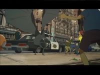 La première surprise survient une fois ce dernier enlevé, puisque la boite qu'il contient voit alors ses deux faces latérales -taillées dans un carton rigide d'excellente qualité- tomber à l'horizontale. Pour ma part, cela n'a pas manqué de m'évoquer les boites d'Edward Nigma qui ont elles aussi souvent tendance à s'ouvrir de cette manière. Tout le coffret s'articule autour de la statuette qui occupe la majeure partie de son espace. En dessous de cette dernière, un petit tiroir contient une pochette en carton dans laquelle se trouve le DVD Batman Gotham Knight. Il s'agit là d'une série de six courts métrages, chacun étant doté d'un style visuel particulier. La narration y est intéressante et permet d'en apprendre plus sur le Chevalier Noir, et sur la manière dont il est perçu par ses concitoyens. A titre d'exemple, Have I Got a Story For You met en scène quatre amis se rencontrant sur une piste de Skate board. Chacun d'entre-eux a eu l'occasion de rencontrer Batman, et ils partagent leurs expériences respectives. L'occasion de s'apercevoir que le héros est vu différemment en fonction des personnes. Ce DVD d'un peu plus d'une heure apporte donc un réel plus au background de l'ensemble. Il est toutefois dommage que la langue française ne soit présente ni dans les pistes audio, ni dans les sous-titres, chose d'autant plus étonnante du fait de la présence d'autres langues comme le hongrois ou le polonais... Notons enfin que la voix anglaise du Chevalier Noir est assurée dans les six courts métrages par Kevin Conroy, qui prête son timbre au personnage dans tous les dessins animés le mettant en scène depuis 1992.