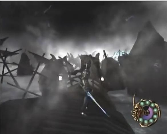 Pour mener à bien sa mission, notre héros devra traverser une trentaine de niveaux se terminant chacun dans un temps compris entre cinq et dix minutes en moyenne.Un rapide calcul aura tôt fait de vous laisser penser à une durée de vie extrêmement réduite, un constat aussi vrai sur le papier que faux dans la réalité. Otogi est en effet doté d'une durée de vie extraordinaire, et ce pour plusieurs raisons. La principale d'entre-elles n'est autre que l'énorme challenge qu'il offre. Je dois bien admettre que, si je savais à quoi m'attendre compte tenu de l'identité du studio de développement, je n'en ai pas moins passé quelques moments parmi les plus pénibles dans ma vie de gamer ! Tout d'abord, il s'avérera très rare qu'un adversaire vous attaque seul, préférant se faire accompagner par un grand nombre de ses congénères. Si certains pourront être défaits en quelques coups d'épée, vous en arriverez finalement à ployer sous le nombre. D'ailleurs, certaines séquences vous attribuant un but précis ne manqueront pas de vous opposer des vagues ininterrompues de démons poppant à l'infini jusqu'à ce que vous ayez rempli l'objectif de mission.