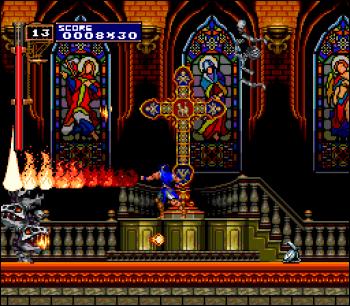 Plutôt que de perdre mon temps (et le vôtre) à expliquer le coeur du gameplay de Rondo of Blood, je vais considérer – à juste titre – que vous n'êtes pas une bande d'incultes, et que vous connaissez déjà parfaitement l'une des séries phares de Konami. Si ce n'est pas encore le cas (?!), je vous conseille vivement de vous plonger corps et âme dans la découverte de cette fantastique (et interminable) lutte contre le comte Dracula.