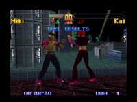 Passons à présent au gameplay du jeu, puisque l’essence même du jeu de combat est bien la manière dont on combat. Ici les développeurs ont mis un point d’honneur à rester dans le basique et la médiocrité la plus totale. Il y a une touche de coup de pied, une de poing et pour fuir et une pour bloquer. Le jeu se voudrait technique dans la lignée de Virtual fighter mais manque au final cruellement d’intérêt. Vous pouvez effectuer des combos pied/poing mais cela reste restreint. Vous pouvez également frapper votre adversaire. Ici le vainqueur n’est pas celui qui met l’adversaire K.O, bien que le K.O entraîne automatiquement la défaite, mais celui qui possède le plus de points. A la fin d’un combat selon votre manière de jouer et la vie qu’il vous reste, vous gagnez un certain nombre de points. Avec ce système vous pouvez vaincre votre adversaire en ayant subi plus de dégâts que lui.