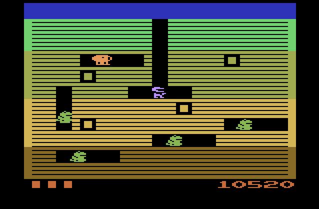 Dig Dug est un titre sympathique qui pèche avant tout par son manque de diversité dans les phases de jeu. Si le titre n’a pas eu la chance de rester dans les annales contrairement à Pac-Man, il a le mérite de proposer un challenge progressif et accessible. Sa place est toute indiquée dans les ludothèques des amateurs de l’Atari 2600.