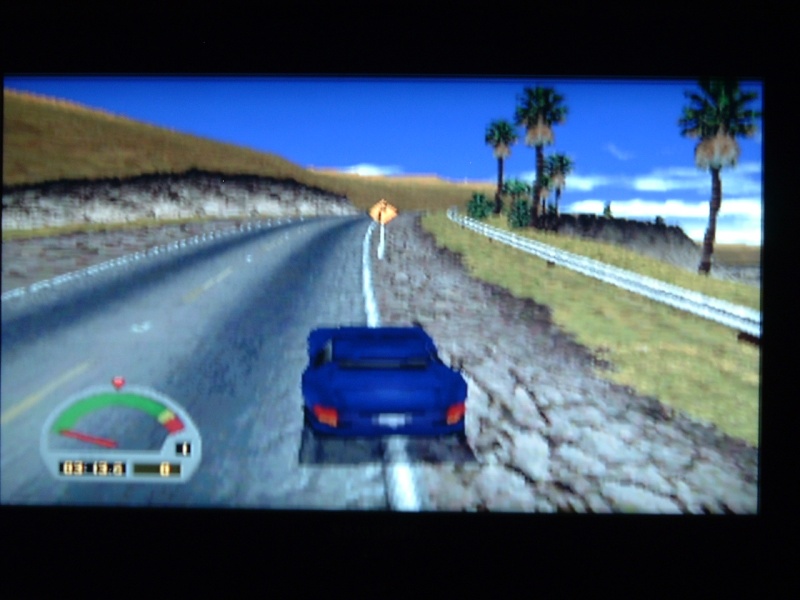 Correcte. Pas de bruits d’ambiance, on n’entend que les crissements de pneus, la sirène de la police et les bruits des moteurs (réalistes mais pas assez « rageurs » à mon goût). Les bruits de collisions sont par contre un peu étranges, et pas très réalistes : les voitures sonnent « creux », un peu comme si on entrechoquait deux canettes vides. Les musiques quant à elles sont tout ce qu’il y a de plus banal… On peut choisir également le son en dolby surround ou mono avant chaque départ de course.