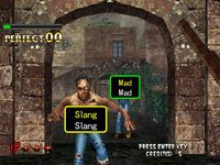 Et oui, n'espérez pas trouver The Typing of the Dead dans la langue de Molière. Au pire, vous devrez carrément être bilingue en Japonais pour vous en sortir, au mieux vous faudra-t-il maitriser parfaitement le vocabulaire anglophone pour espérer vaincre. Le soft de Sega n'est en effet sorti qu'au Japon et aux États Unis, et les mots apparaissant à l'écran seront donc issus d'une de ces deux langues. Compte tenu de la rapidité à laquelle devront s'enchainer les différentes saisies, autant vous dire que le moindre cafouillage sur l'orthographe d'un mot s'avérera fatal! Ici, pas le temps de tergiverser, vos adversaires étant tout aussi réactifs que dans ThotD. Dans ces conditions, il sera donc totalement impossible d'espérer vaincre sans avoir un minimum de vocabulaire en anglais (le panel de mots utilisés étant par ailleurs d'une grande richesse), et surtout une maitrise totale de la position des touches sur le clavier (réfractaires à l'informatique s'abstenir!). A ce titre, un passage par l'excellent mode tutorial s'avérera indispensable pour tous ceux ne répondant pas à ces deux critères.
