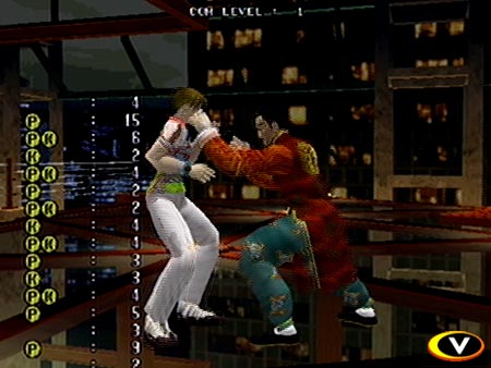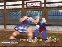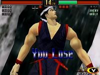 Chaque personnage disposera en outre de son propre style de combat et de sa propre carrure (allant de 47kg pour la frêle Aoi à 230kg pour le mastodonte Taka) avec des manipulations diverses et variées pour réaliser leur coups, créant ainsi une énorme variété au niveau du gameplay. La jouabilité sera comme à l’accoutumée basée sur trois touches principales : pied poing et garde. S’y ajoutera également une touche dévolue à l’esquive, nouveau mouvement offert au joueur lors des combats. Cette possibilité fut beaucoup décriée par les fans de la première heure à l’époque. L’idée n’en est pas moins intéressante et utiliser cette nouveauté vous sera particulièrement utile lors de vos tentatives pour éjecter votre adversaire du ring. Le plus gros changement en termes de contrôles viendra de la possibilité de contrôler votre alter ego virtuel via le stick directionnel, rendant ainsi le plaisir de jouer plus grand encore que dans Virtua Fighter 2 avec la manette non-analogique de la Saturn. Autre nouveauté marquante : vous aurez désormais la possibilité de choisir entre trois vues différentes. Malheureusement, si l’idée est louable, sa mise en œuvre laisse à désirer et vous reviendrez bien vite à la caméra classique, malgré l’intérêt flagrant de l’injouable vue subjective en termes d’immersion. Le gameplay n’en reste pas moins excellent et fait honneur à celui de ses prédécesseurs, vous faisant ressentir les mêmes sensations qu’en salle d’arcade.