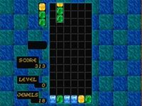 Le principe du jeu en lui-même demeure assez simple. Une colonne verticale, composée de trois blocs dont chacun est doté d'une couleur choisie aléatoirement par la console, descend sur un plateau de jeu. Le but est d'aligner au moins trois pierres précieuses possédant la même teinte, afin de les faire disparaître et accessoirement d'obtenir des points qui vous permettront de passer les niveaux. Au fur et à mesure de la progression, les joyaux descendront plus rapidement, augmentant de fait la difficulté de l'ensemble. Si par malheur les blocs atteignent le haut de la zone de jeu, vous aurez droit à un tragique écran de Game Over. La principale différence par rapport à Tetris réside dans l'impossibilité d'influer sur la position de l'agrégat de joyaux, celui-ci restant toujours sous une forme longiligne. Vous aurez cependant un certain contrôle sur ces joyaux, en modifiant la position des blocs dans la ligne verticale via l'une des touches du pad, et en déplaçant latéralement les éléments tombant d'en haut de l'écran. Finalement, le principe de base ici mis en œuvre s'approche grandement de celui de Tetris, puisque le but ultime reste d'éliminer des blocs pour éviter la fin de partie et gagner des points.
