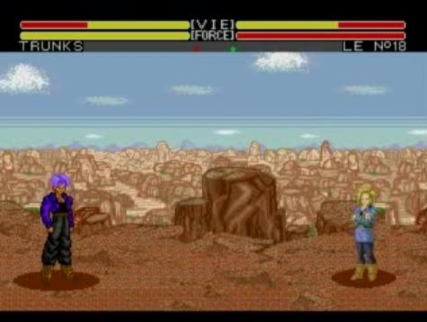 Et malheureusement, le temps passé à maitriser les différents protagonistes sera une conséquence directe de la jouabilité hasardeuse du titre. En effet, la pauvreté de la manette Megadrive en ce qui concerne le nombre de boutons (trois contre six sur celle de la Super Nintendo) a obligé les développeurs à réduire fortement le nombre de coups de base disponibles. Ainsi, les trois touches seront utilisées par pied/poing/vol, bannissant la boule de feu des coups de base et vous obligeant à effectuer une manipulation pour la sortir… Et dans l’ensemble, les manipulations seront assez malaisées à réaliser et vous aurez bien du mal à sortir la plupart des dix coups disponibles par personnage. Ce manque de précision sera réellement dommageable en comparaison des moutures Super Nintendo, jouissant d’une jouabilité des plus satisfaisantes. A noter que vous aurez la possibilité de renvoyer les attaques énergétiques de votre adversaire par une combinaison de touche mais malheureusement, la complexité de cette combinaison couplée au timing extrêmement serré pour la réaliser ne vous permettra que très rarement de l’utiliser. La touche de vol vous permettra quant à elle de décoller du sol pour vous éloigner de votre adversaire. En effet, la particularité des jeux DBZ sortis sur 16 bits est de proposer des surfaces de combat de très grande taille permettant des affrontements à distance par le biais d’un écran splitté, un radar étant présent tous la barre de Ki pour vous indiquer votre position par rapport à votre adversaire. Abordons cette dernière, puisqu’ici la jauge de vie sera accompagnée d’une seconde barre mesurant le Ki que vous aurez à votre disposition. Ce ki sera utilisé dès lors que vous effectuerez une attaque énergétique (comme un Kameha ou bien une simple boule de feu par exemple) et vous devrez garder constamment un œil sur cette jauge puisque si elle se vide totalement, vous serez dans l’incapacité de bouger et donc de faire face aux attaques de votre adversaire. Rassurez vous cependant puisque vous pourrez la recharger à tout moment, pour peu que vous vous éloigniez suffisamment de votre ennemi pour avoir un petit temps de répit. Le gameplay reprend donc les grands principes des opus sortis sur la concurrente de Nintendo, mais les faiblesses de la manette Megadrive couplées à un flagrant manque de précision rendent cette maniabilité nettement moins intuitive.