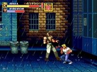Tout d'abord, sachez que ce SOR2 est encore plus riche en baston que son ainé. On avance toujours de façon linéaire dans le niveau en envoyant des hordes de voyou au tapis. Seulement cette fois-ci, le gameplay s'étoffe quelque peu. Il s'étoffe d'une part par la présence des deux nouveaux personnages, ici radicalement différents. Les rollers de Skate lui confèrent une vitesse explosive alors que les bras de Max lui offrent la possibilité de réaliser suplex et autres piledrivers destructeurs. Ici, pas question d'avoir 3 personnages identiques ou presque. De même, la palette de coups s'étoffe également. On peut maintenant faire des balayages, des prises multiples, des coups de pied retournés,etc.