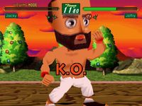 N’allez cependant pas croire que le jeu a perdu en technicité à l’occasion de cette adaptation, puisque le gameplay a gardé toute sa richesse en reprenant la maniabilité de Virtua Fighter 2, tout en l’agrémentant de quelques nouveautés sympathiques. Ainsi, la jouabilité de ce nouvel opus sera toujours basée sur trois touches vous permettant d’asséner des coups de pied, de poing et de vous mettre en garde. Combiner ces trois touches de base avec les différentes directions de la croix directionnelle aura pour effet e vous permettre de déclencher de (très nombreuses) attaques spéciales tirées de véritables arts martiaux qui seront grosso-modo les mêmes que dans VF2, malgré l’ajout de certains coups et possibilités inédits (comme le nouveau système d’esquive), sachant que vous devrez tout de même tenir compte de la petite taille de vos personnages dont les coups auront de fait une moins grande portée. Pour vaincre votre adversaire, vous aurez à votre disposition trois solutions. La première consistera à le mettre KO en vidant totalement sa barre de vie, mais vous pourrez également gagner du temps pour laisser le chrono arriver à zéro ou bien pousser l’autre combattant hors du ring.