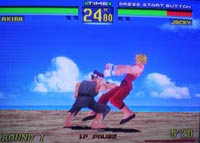 Dans les autres domaines, les différences sont aussi inexistantes qu’elles sont flagrantes au chapitre réalisation. Et cela commence par le gameplay qui n’a pas changé d’un millimètre. Ainsi, vous aurez toujours un bouton de coup de pied, un de coup de poing et un de garde (puisque dans les jeux de la série, il ne suffit pas de reculer pour parer). La prise en main de base est donc très simple mais se complique fortement lorsque vous ouvrez le manuel et que vous voyez le nombre de coups spéciaux à assimiler puisqu’ils seront au nombre de huit par personnage (et ce, sans compter les variantes des attaques de base). Chaque coup est très réaliste et vous pourrez si l’envie vous en prend le réaliser dans votre chambre (faites quand même gaffe à votre télé !) puisqu’aucune boule de feu ou autre coup fictif n’est au programme. Vous pourrez toujours battre votre adversaire de trois manières différentes (K.O., Ring Out très intéressant pour maintenir le suspense jusqu’au bout ou Time Out) et le même principe du round en mort subite sera utilisé en cas d’égalité à la fin du combat (le premier coup porté est fatal). Gameplay totalement identique à celui de la version de base qui ne perd donc rien de son efficacité en étant à la fois accessible aux novices et très difficile à assimiler en totalité pour les joueurs confirmés cherchant un jeu techniques aux multiples possibilités.