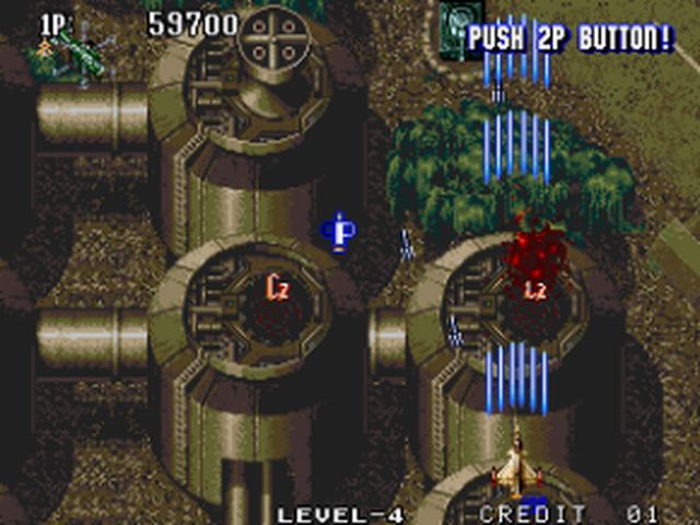 Comme vous allez rapidement vous en rendre compte, pour des avions de chasse, nos pilotes seront un peu limités niveau armement. Seuls deux boutons sont utilisés : A pour tirer (pas de chargement de puissance en restant appuyé, de tir continu, ou autres fonctions supplémentaires), et B pour lancer une bombe. On pouvait difficilement faire plus simple... Impossible également de changer d'armement. Des Power Up se ramassent pour un maximum de quatre, à l'instar des bombes. Quand vous perdez une vie, vous perdez vos bonus mais vous libérez dans votre mort une capsule Power Up et une bombe, histoire de ne pas repartir totalement de zéro.