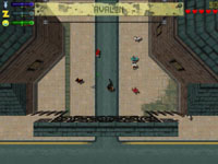 L'air de rien, je viens d'introduire une notion assez importante dans GTA 2 : les gangs. Si dans GTA ils étaient déjà présents, dans GTA 2 ils jouent un plus grand rôle. Chaque quartier est contrôlé par trois gangs. D'abord, la surpuissante corporation Zaibatsu est présente dans chacun des districts. Le reste du centre-ville est partagé entre les Loonies, des junkies décérébrés et les Yakuzas. La banlieue résidentielle est quant à elle aux mains des Rednecks (des gros beaufs) et des Scientists du complexe SRS, qui pratiquent d'étranges expériences génétiques, le clonage entre autres). Enfin, la zone résidentielle est contrôlée par la Mafia russe et le Hare Krishna, une secte d'illuminés. Chaque clan propose des missions (réparties en trois niveaux de difficulté). Lorsqu'on accomplit une mission pour le compte d'un gang, on grimpe dans son estime. Mais cela n'est pas sans conséquence : plaire à un clan, cela déplaît à un autre clan. En bref, les relations entre le joueur et les gangs sont mouvementées. Mais quel intérêt y a-t-il à être l'allié d'un clan ? D'abord, il faut être suffisamment apprécié par l'un d'eux pour pouvoir accéder à leurs missions (et donc à l'argent). Ensuite, lorsqu'un clan déteste le joueur, il n'hésitera pas à l'éliminer. Se promener dans un quartier contrôlé par une organisation qui vous hait tient donc du suicide. Ces relations sont représentées en permanence à l'écran au moyen de trois petites barres. Pour regagner l'estime d'un clan, il suffit d'exécuter quelques-uns de leurs contrats ou de tuer plusieurs membres d'un gang adverse (pas n'importe lequel cependant).