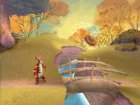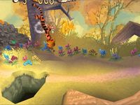 J’entends déjà siffler quelques mauvaises langues en ce qui concerne le scénario de cette adaptation Disney... Jugez donc par vous-même. La scène se passe dans la forêts des rêves bleus, lieu d’habitation de notre ami l’ourson. Ce dernier a eu la bonne idée d’organiser une grande fête afin de remercier ses amis. Pour quelle occasion me demanderez-vous? Et bien, il n’y en a pas. Il est écrit textuellement dans le livret que «Winnie remercie ses amis d’être justement ses amis...». C’est un jeu pour enfants d’accord, mais ça ne dispense pas d’éviter certains raccourcis d’un goût douteux, n’est-ce pas messieurs les scénaristes? Toujours est-il que pour notre cher plantigrade en peluche, cette fête sera l’occasion de se goinfrer de miel, son passe-temps favori. Un détail reste cependant à régler. Comment rassembler assez de pots de miel? C’est là que Tigrou, son fidèle ami félin, entre en jeu. Débarquant sans prévenir dans la maison de Winnie, c’est lui qui va partir en quête des fameux pots de liquide visqueux pour le compte de son ami, et ce sera à cet instant que l’aventure du joueur débutera...