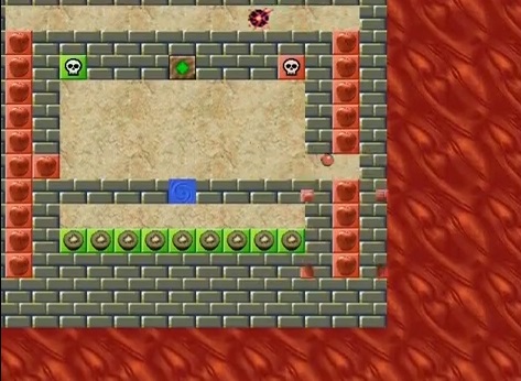 Comme je l'ai brièvement expliqué un peu plus haut, le but sera de casser des briques de fruits. Mais dans les détails, préparez-vous à en baver. Tout d'abord, les briques n'ont pas toutes la même couleur, il vous faudra donc au préalable colorer votre balle à l'aide de blocs particuliers. Vous aurez aussi des téléporteurs, qui peuvent se montrer traîtres et vous projeter au mauvais endroit au mauvais moment. Certaines cases ne peuvent quant à elles être détruites que par certains ennemis, la tactique sera donc de modifier leur trajectoire pour les amener à ce que vous désirez. Si au début, les premiers niveaux sont assez simples et vous permettront de vous faire la main, très vite, il vous faudra bien anticiper chaque mouvement, ne pas vous brusquer et réfléchir au moyen de détruire tous les fruits. Tantôt il s'agira de colorer les balles puis de détruire les briques dans un ordre bien défini pour ne pas se retrouver coincé, tantôt il vous faudra compter sur l'aide de vos ennemis, qui exploseront tout sur leur passage vous permettant ainsi de franchir des endroits qui vous paraissaient inaccessibles tout en respectant le bon timing avant que vous ne soyez pas bloqués. Parfois encore, vous devrez montrer beaucoup d'habileté pour éviter les têtes de mort qui risquent de vous atomiser… Certains niveaux ne comportent que deux ou trois briques à détruire. Méfiez-vous, généralement, ce sont ces stages qui sont les plus difficiles, car il vous demanderont tout un tas de manipulations pour en venir à bout. En bref, si la prise en main est enfantine, le jeu l'est beaucoup moins, et cela nécessitera une grande dose de réflexion de votre part si vous souhaitez vous en sortir.