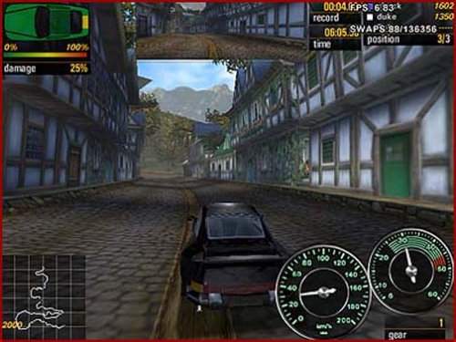 Ainsi, là où les précédents épisodes vous proposaient de choisir votre véhicule parmi un prestigieux casting hétéroclite, vous devrez ici vous contenter des véhicules commercialisés par le constructeur Allemand. Pas d’inquiétude néanmoins : la richesse du jeu n’en sera en rien altérée puisque vous aurez accès à un impressionnant panel de voitures toutes plus cultes les unes que les autres, allant de l’antique 356 sortie dans les années 50 à de véritables bolides comme la GT1. Plus qu’un jeu, NFS5 représente un véritable historique détaillé de la marque qui vous permettra de piloter la quasi-totalité de leurs modèles sortis ces cinquante dernières années, pour un total de soixante dix véhicules (dont certains étaient à l’époque téléchargeables gratuitement sur le site officiel). Vous aurez ainsi le privilège incomparable de suivre l’évolution du constructeur, et de comparer la conduite sur les différents modèles. Car contrairement à des jeux comme Trackmania, Need for Speed Porsche 2000 propose des voitures aussi différentes par leur conduite que par leur aspect extérieur. Ne comptez pas conduire une 993 comme une 356, sous peine de devoir faire face à de mauvaises surprises. Certains modèles antédiluviens auront tendance à décrocher facilement malgré leur pitoyable vitesse de pointe (jamais en dessous de 130 tout de même !), tandis que d’autres vous étonneront par leur tenue de route vous permettant de prendre vos virages dans les meilleures conditions sans craindre de vous retrouver dans le décor en cas de non-respect d’un timing très serré. De même, le type de motorisation (avant ou arrière) agira directement sur le comportement de votre véhicule que vous aurez à prendre en compte, ainsi que les types de suspensions et une pléthore d’autres facteurs divers et variés. Vous devrez donc constamment adapter votre manière de conduire à la voiture que vous pilotez, sans quoi la seule partie de vos adversaires que vous verrez sera leur pare-choc arrière.