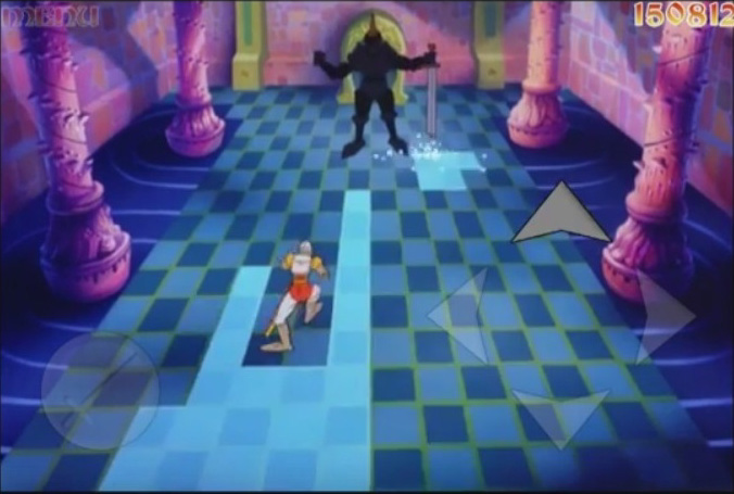 Il nous reste donc à évoquer les deux modes de jeu disponibles. Le premier intitulé Arcade est la réplique exacte du déroulement de la borne d'origine. Ce système n'a d'ailleurs jamais été repris dans les adaptations consoles et se trouve bizarrement exclusif à cette version IOS. Le déroulement se fait de manière totalement aléatoire durant le jeu, mais surtout vous enchaînez sur une salle différente dès que vous mourrez. Enfin, il faut ici réussir toutes les scènes, dont certaines reviendront en mode miroir. Les scènes réussies ne réapparaissent pas, par contre celles où vous êtes mort reviennent aléatoirement. Du coup il arrive qu'on refasse une paire de fois la même pièce après en avoir réussi d'autres, jusqu'au succès final. Une fois toutes les épreuves satisfaites, le jeu vous place dans la scène finale contre le dragon et la scène mythique de Daphnée qui attend son sauveur.