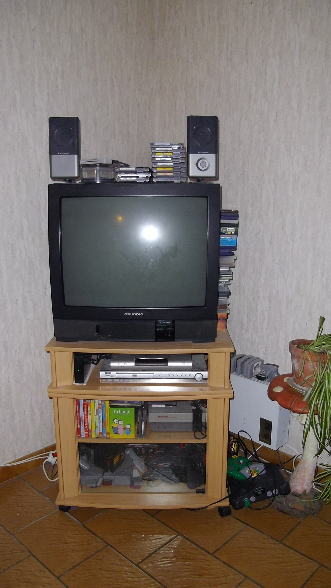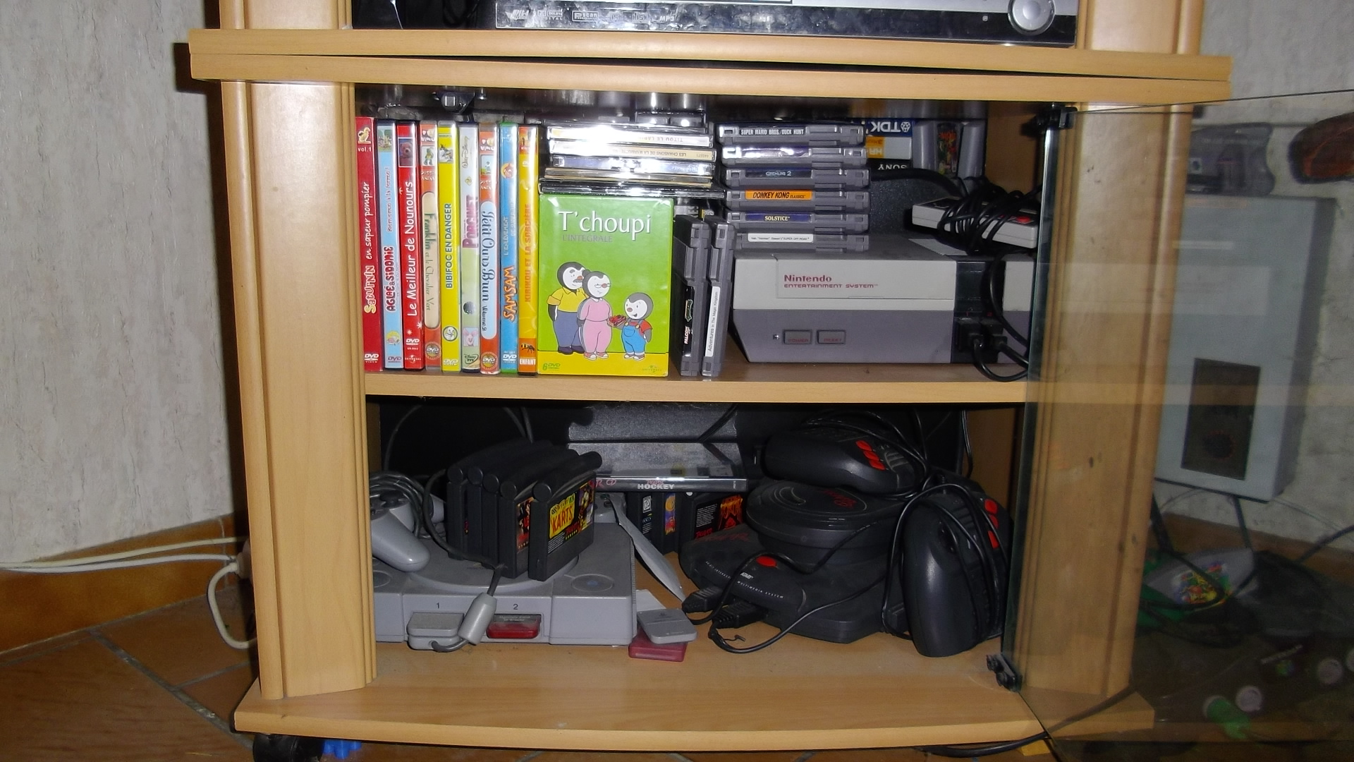 Et la pauvre N64, même pas posée à plat :/ Mais je la caresse parfois pour la consoler en attendant :